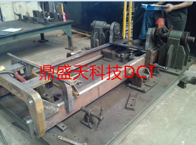 假设生产问题:当焊接叉车门架时发生专用工装本身精度不高,稳定、通用性差,焊接过程中由于焊接变形而导致门架内当尺寸与安装尺寸发生误差,这个时候该怎么办?叉车门架产品如下图。