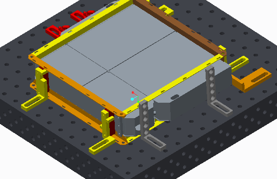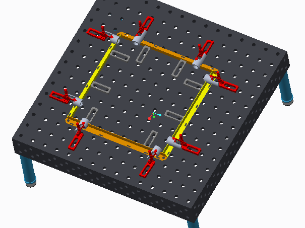 1、散热器框架部件单独焊接,选用我司三维柔性焊接平台1500*1500,内档定位,保证里框尺寸及对角度。