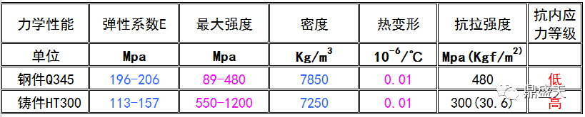 1.刚性:焊接件所用材料为碳钢,其弹性模量和力学性能大大优于铸件所用的铸铁材料,弹性模量 |