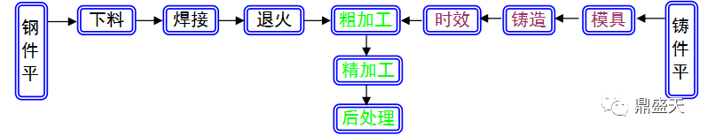 2.铸造平台生产需木模制作、需熔炼设备;加工余量较大;时效时间较长,并占用空间较大。