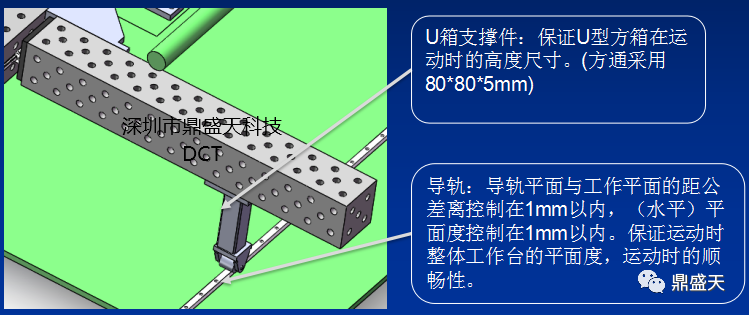 4、平台和U箱侧面可进行延申,保证保证定位检测元件的安装位置。