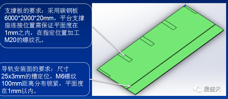 1、工装属于检测基础工作台平面度要求2mm之内,工装的平面尺寸6000*2050mm。